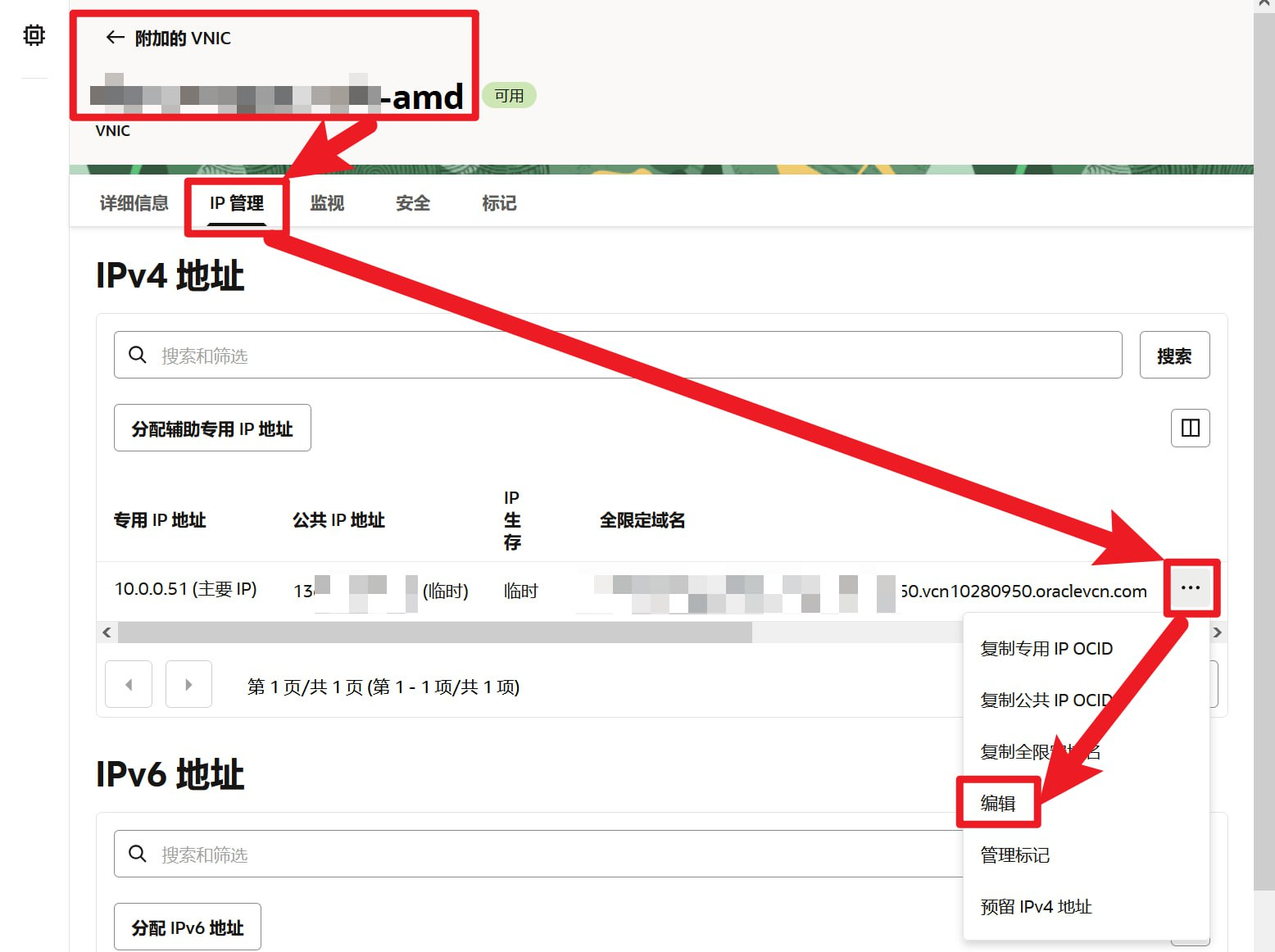 注意:甲骨文实例开机后公网ip无法访问(被墙)的解决办法/实例更换ipv4的ip地址的操作步骤